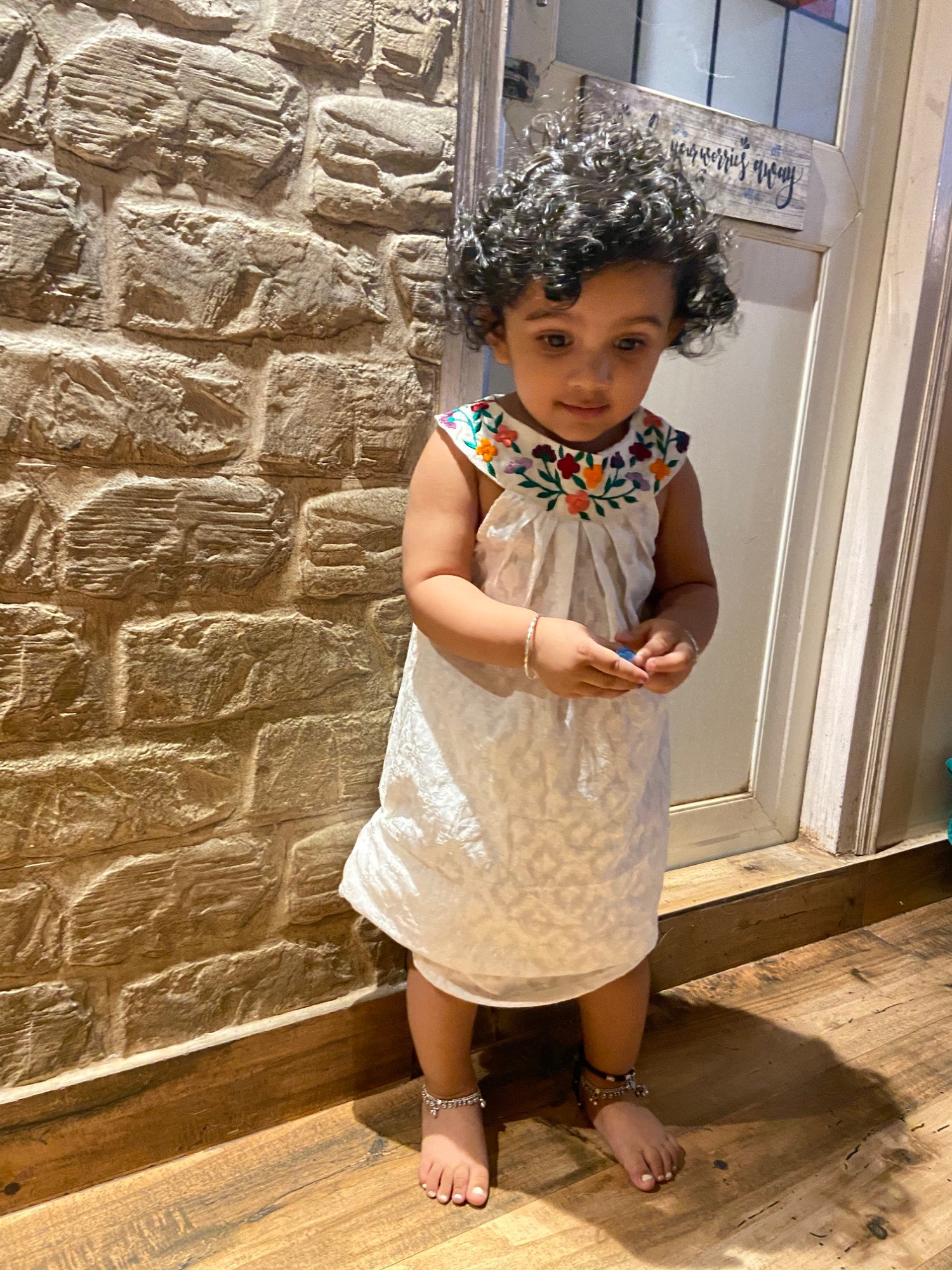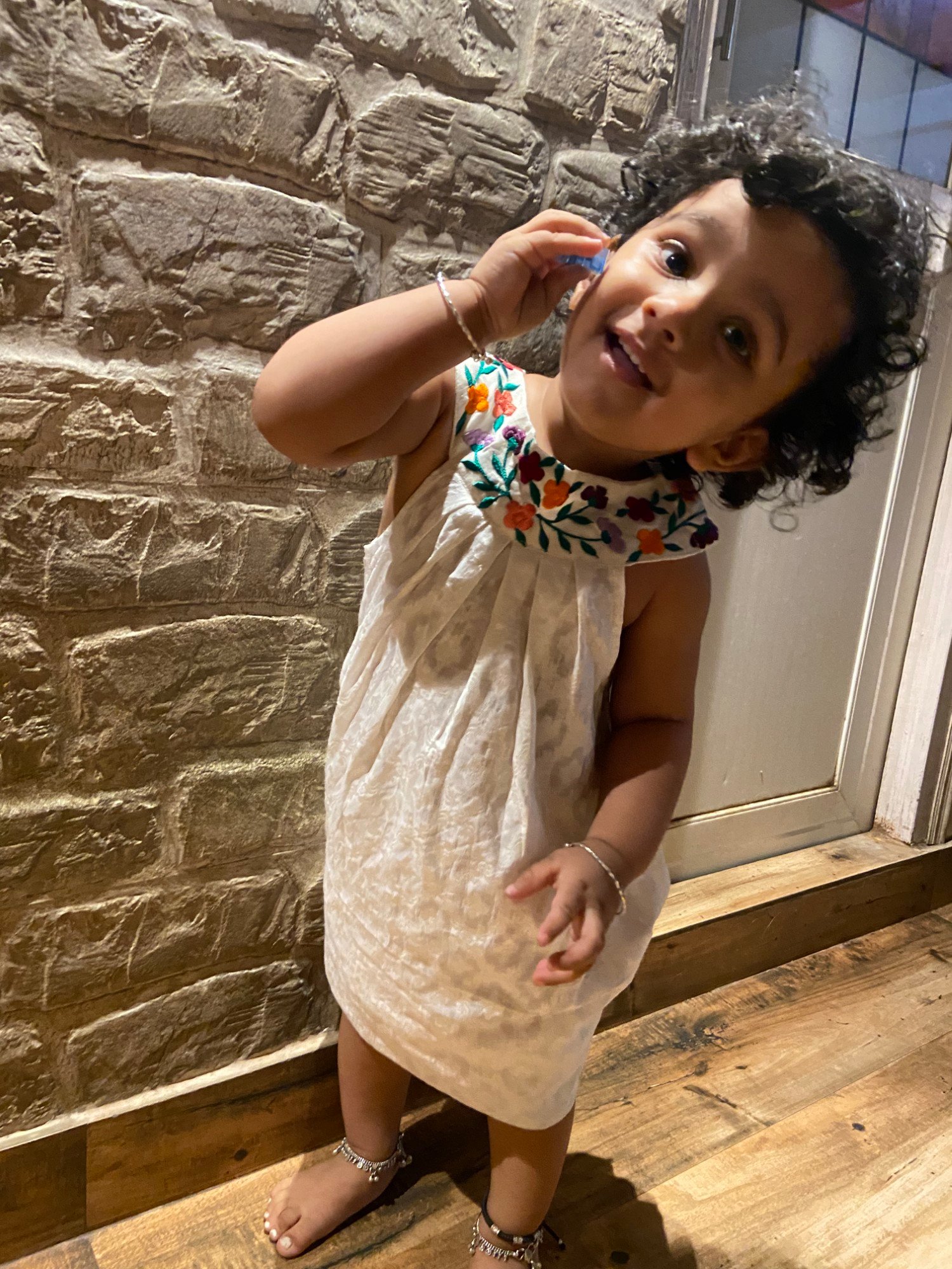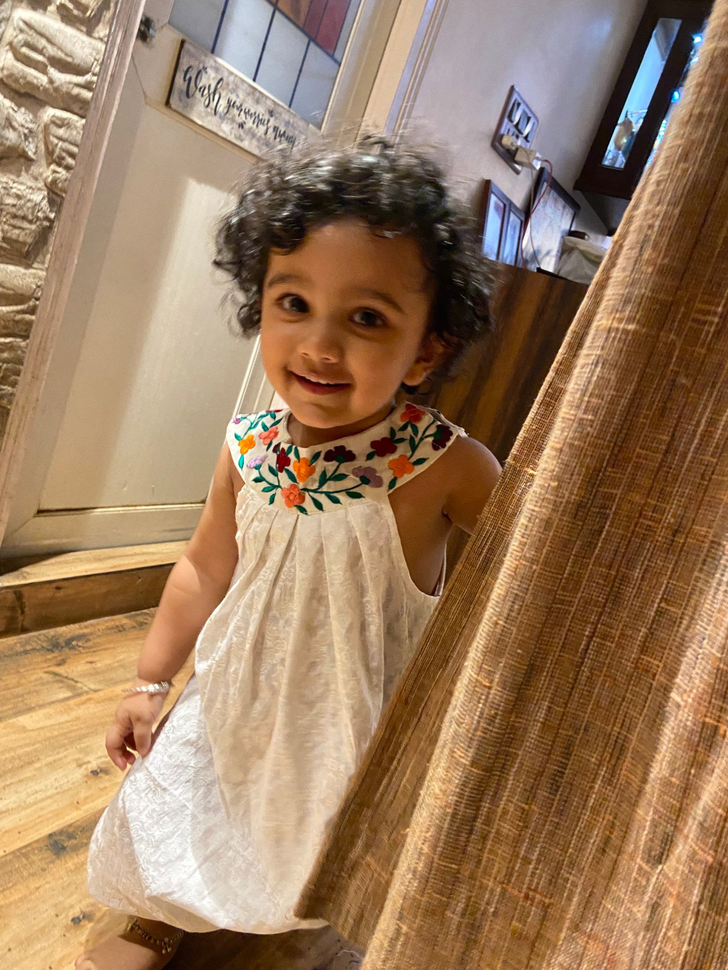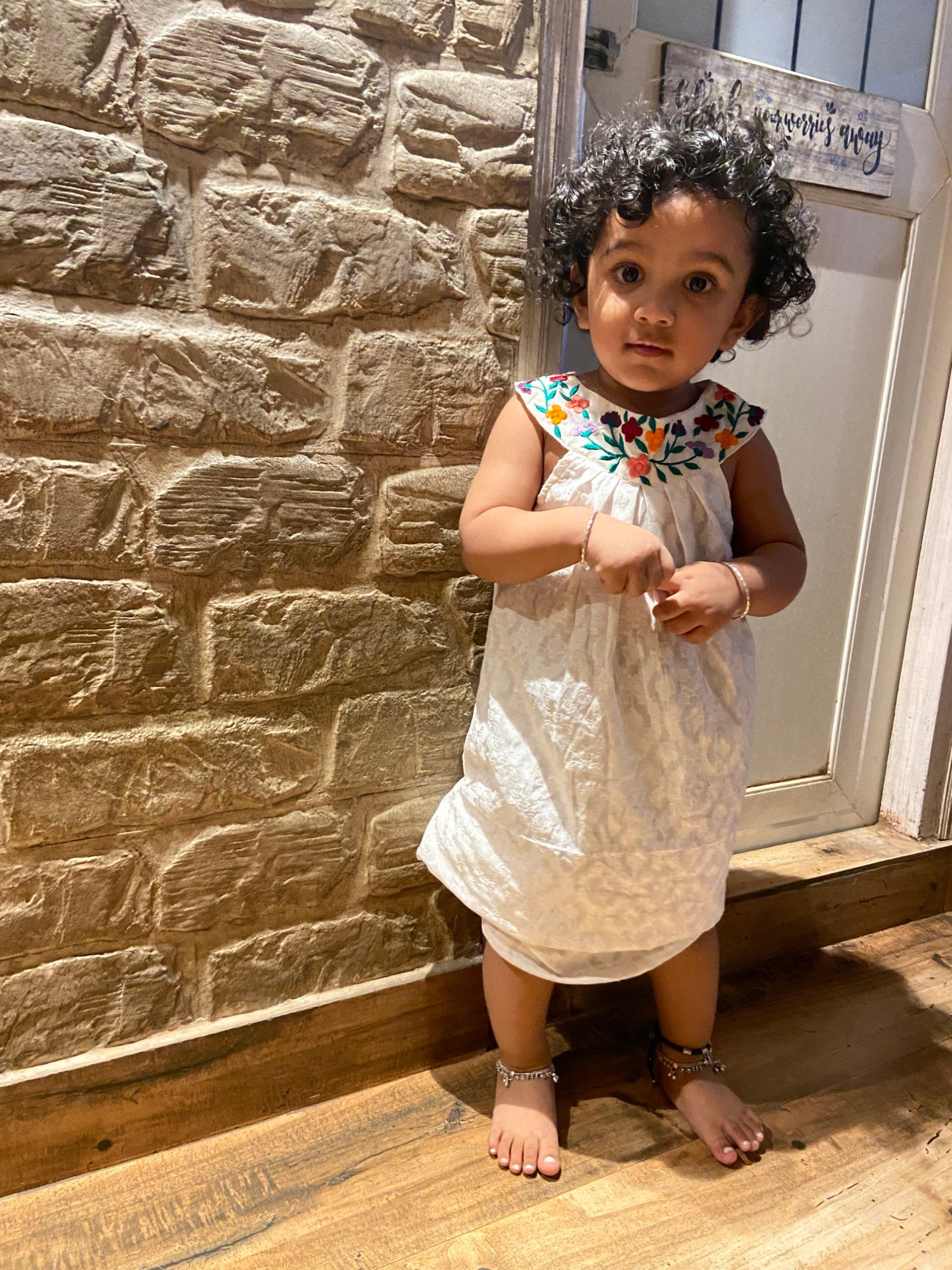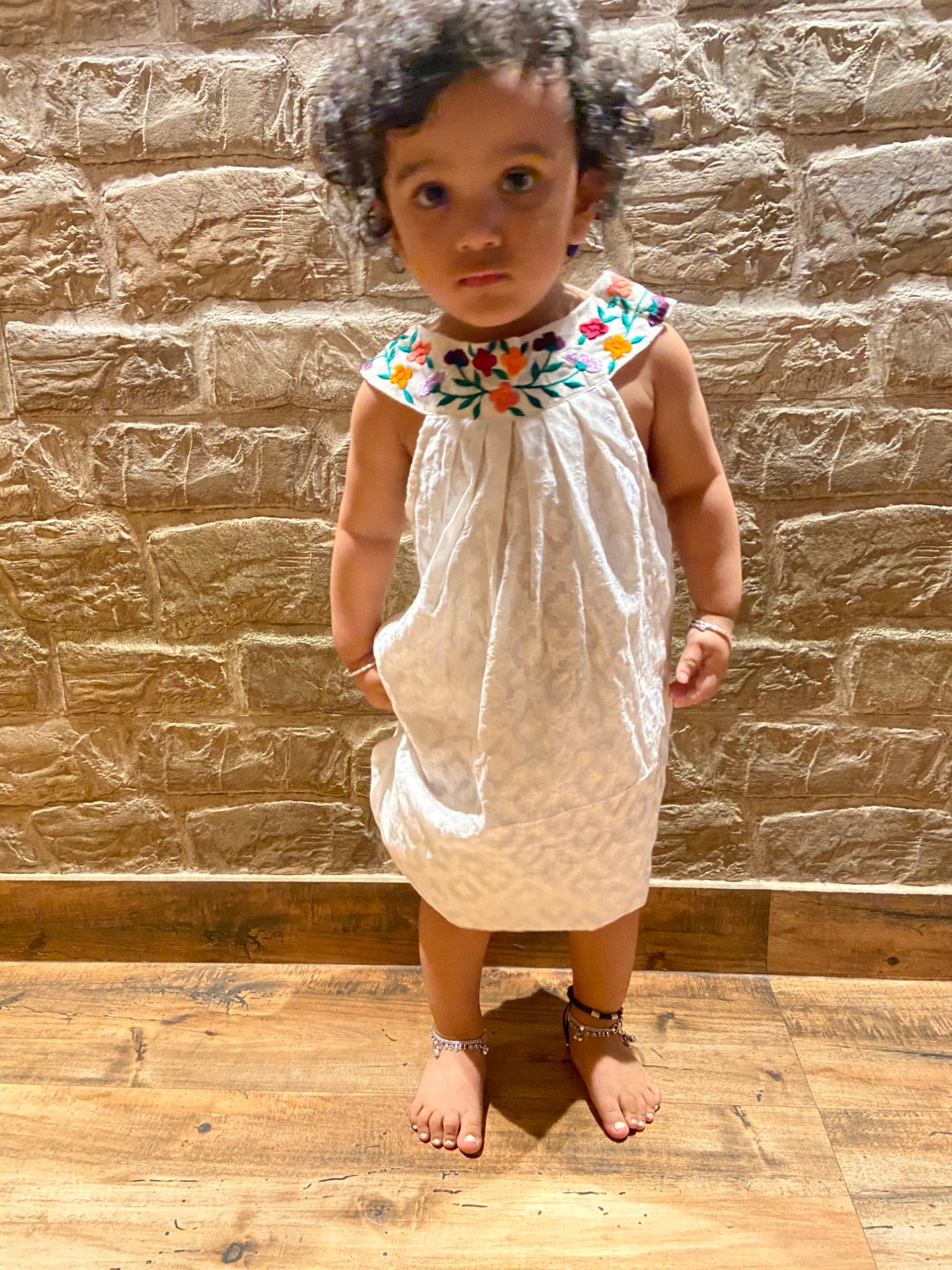 The Floral Knotty Frock is crafted in milk white Benarasi Cotton, featuring a distinctive knotted neckline and delicate scattered floral embroidery that adds a soft, handcrafted charm. Elegant yet effortless, this piece is perfect for everyday ethnic wear and understated festive occasions.