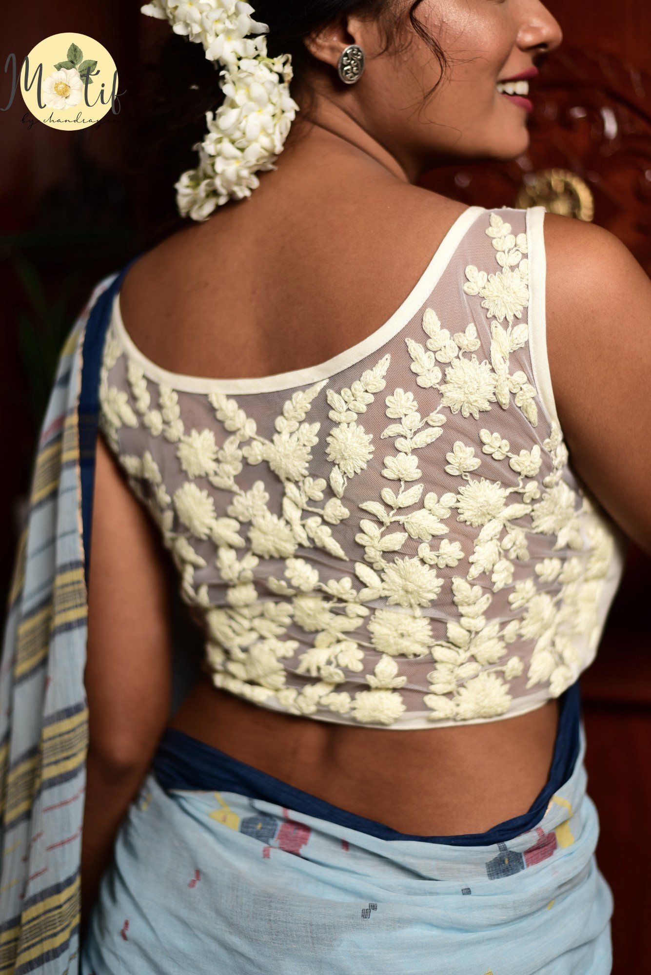 Ivory Bloom – Floral Embroidered Net Blouse