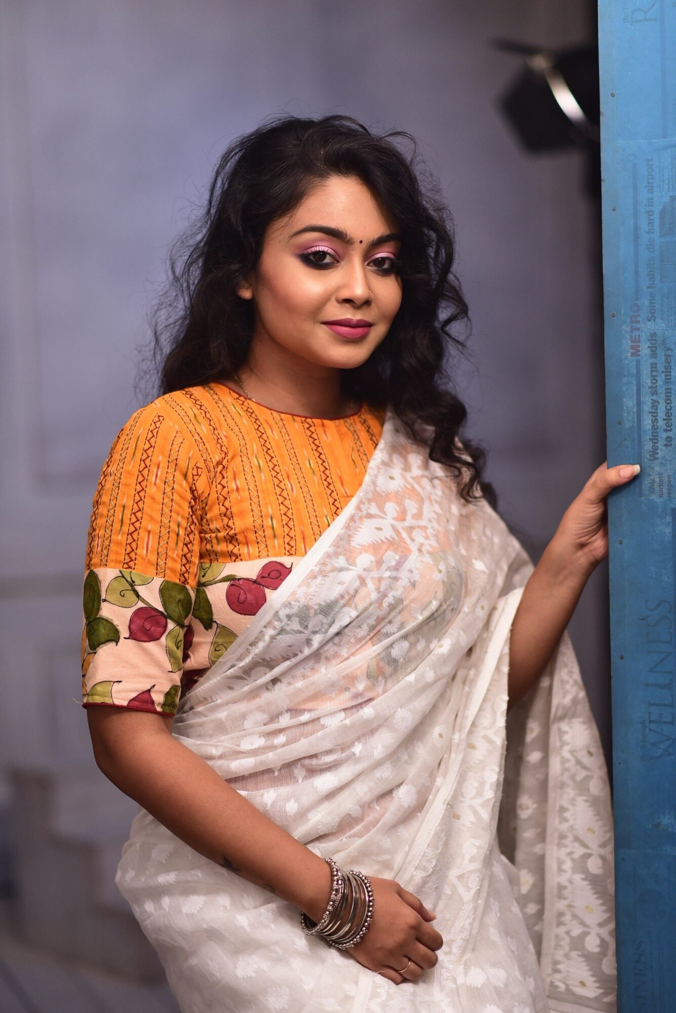 - Work: Kantha embroidery with hand-painted pen Kalamkari (pigment colours)