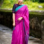- Embroidery: Floral Kantha motifs in rani pink threads