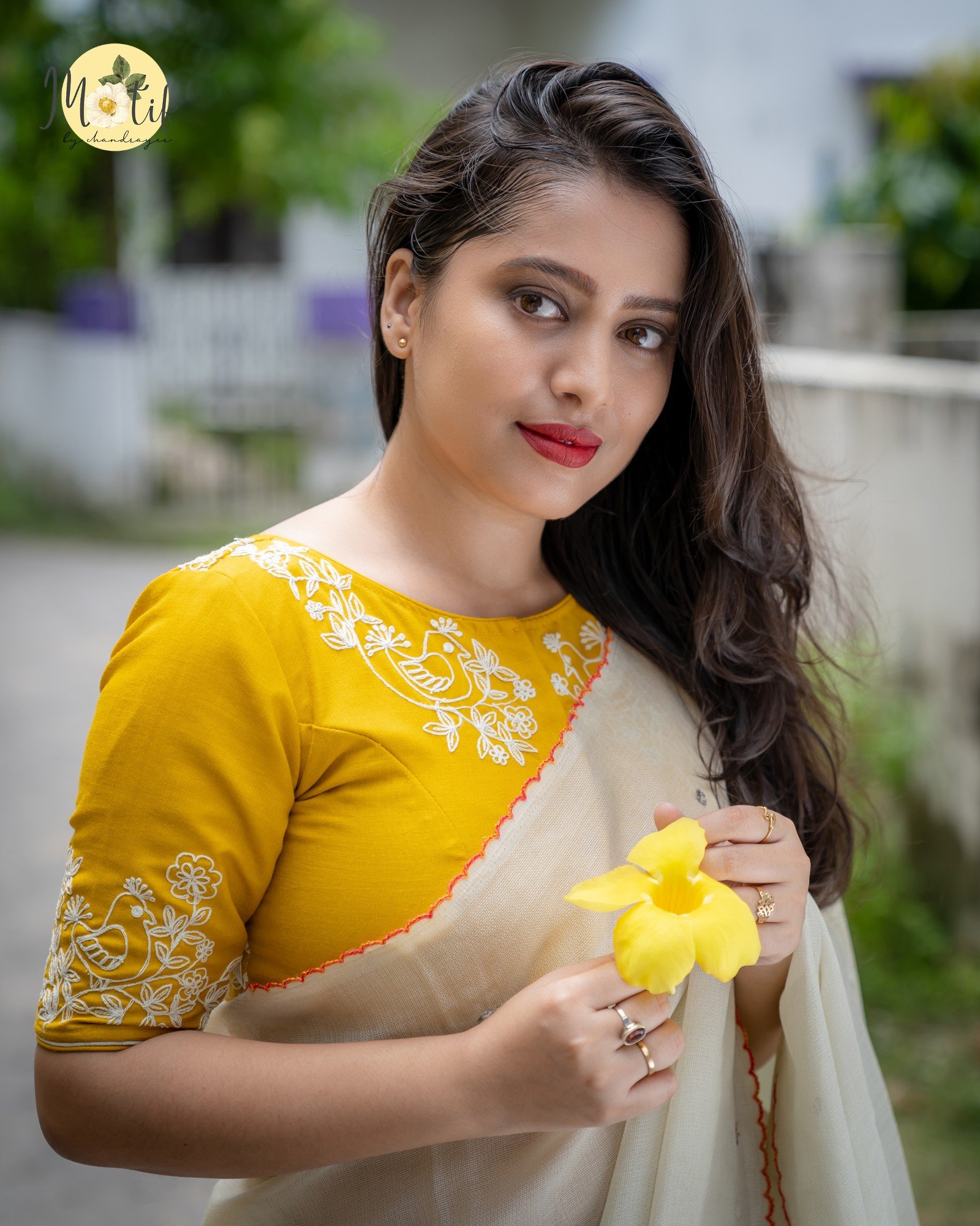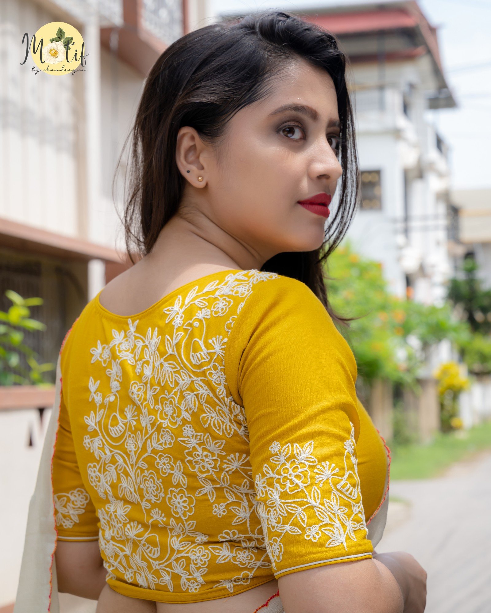 Elevate your ethnic wardrobe with Yellow Dori Pakhi blouse, a charming mustard-yellow slub cotton blouse featuring intricate white dori work, embroidered bird motifs, and delicate floral accents. Designed with a small, elegant neckline, cord piping, front closure, and a non-padded structure for effortless comfort. A perfect blend of tradition and artistry, ideal for festive, casual, and handloom sarees.