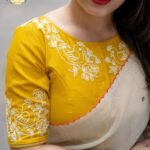 - Small, graceful neckline that complements most saree drapes
